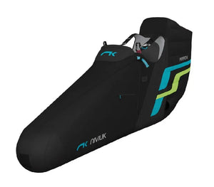Der Beinsack besteht aus robustem, semi-leichtem Lyrca und kann durch ein leichtes System aus verschiebbaren Knoten, Reissverschlüssen und Magneten an den Körper des Piloten angepasst werden. Dies garantiert eine hervorragende Passform und es verfügt über ein einfaches Schliesssystem.