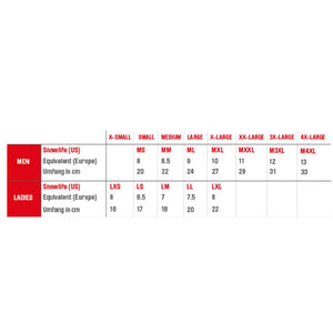 Grössen:Lady XS-XL / Men S-XXL (L vor der Grösse steht für Lady und M vor der Grösse steht für Men)